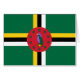 The flag of Dominica was adopted on November 3, 1978, with some small changes having been made in 1981, 1988, and 1990. The flag, adopted in 1978, features the national bird emblem, the sisserou parrot, which also appears on the coat of arms granted July 21, 1961. This parrot is unique to Dominica. It is an endangered species; only a few pairs remain. The green field represents the lush vegetation of the island. The cross represents the Trinity and the Christian faith, and its 3 colours recall the native Indians, the fertile soil, and the pure water. The 10 stars stand for the 10 parishes and the red disc for social justice.