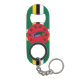 The Dominica flag is a flag with a circular red emblem with Sisserou Parrot and 10 stars. The used colours in the flag are red, green, yellow, white, black, brown, purple. The proportion of the Dominica flag is 1:2. The Flag of Dominica was adopted in 1990. The first use of the current flag design was in 1978. The last change to the current Dominica flag design was in 1990.