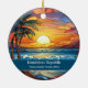 Cute faux stained glass beachy scene, personalizable Dominican Republic Hawaii Beach Trip souvenir. Great for Christmas and family vacation keepsake, or honeymoon momento.