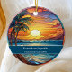 Cute faux stained glass beachy scene, personalizable Dominican Republic Hawaii Beach Trip souvenir. Great for Christmas and family vacation keepsake, or honeymoon momento.