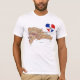 A heart shaped Dominican Republic flag is placed next to a relief map of Dominican Republic on this distinctively patriotic t-shirt.