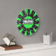 Purchased this online and it got delivered quickly. It was a present for my Dads 70th birthday. He loves clocks so decided to get him one with something written on it. Battery went in and it started working straight away. Dads had no issues with it. Printing was just how it came up online.