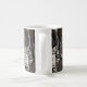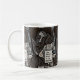 Don Quixote Wraparound Mug: The First Step is to Dream. Woodcut style digital image in mostly black and white.