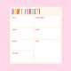 Colourful, cute, bright and fun “Don’t Forget” reminder notepad. Stay organised and brighten up your workspace with these cheerful and useful sticky notes! Featuring rainbow-coloured text and a minimal design with space for calls, emails, orders, tasks, appointments, events and tasks. Matching stationery available!