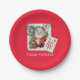 Here’s a vintage look Santa Claus paper plate. Set on a red background, which can be customised, this design has an Official North Pole stamp that says “Don’t Open Until Christmas Eve”. The text at the bottom can also be customised.