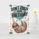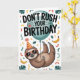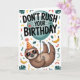 Cute sloth wearing sunglasses and a party hat, hanging from a balloon with the fun message “Don’t Rush Your Birthday.” A perfect chill birthday card to enjoy the day slowly!