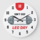 Bold and motivating wall clock design featuring a barbell loaded with weight plates on a clean white background and the powerful phrase “DON’T SKIP LEG DAY” in black lettering. Perfect for gyms, home workout spaces, personal trainers, and fitness enthusiasts who live by the leg day rule. This minimalist yet strong design adds a motivational touch to any fitness club, garage gym, or workout studio while keeping time in style.