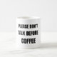 Funny coffee mug for introverts and coffee lovers who need caffeine before conversation.