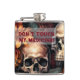 The contents of this flask is for “medicinal purposes”. This whimsical Halloween flask has skulls with a floral background. On the front, the message reads “DON’T TOUCH MY MEDICINE”.