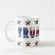 Patriotic design supporting Donald Trump in the presidential race. The word "TRUMP" placed between two rows of silver stars, reflects the American flag on its' surface.