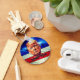 This design has a modern rendition of Donald Trump and a background of stars and stripes.