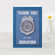 Thank the donors who support the police departments. The men and women in blue is reinforced with a blue wooden wall background. A silver police badge is centred amid the appreciation words for the donation.