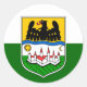 Flag of the Danube Swabians (Donauschwaben) designed by Hans Diplich in 1950. The Donauschwaben are ethnic Germans who settled in Hungary, Satu Mara (Romania), Vojvodina (Serbia), and Slavonia (Croatia) in the 17th and 18th centuries. After WWII, about half of the Donauschwaben were expelled from these areas (or executed). Donauschwaben diaspora communities are maintained in Germany and other western countries with many adopting this symbol. At the top of the shield is the German eagle, on the bottom of the shield the city of Temeswar (Timisoara) situated between the crescent of Islam and the sun of Christianity, connected by the blue Danube.