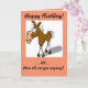 A cartoon donkey graces the front of this card wishing someone a Happy Birthday. A comical card.