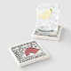 The coasters are gorgeous, a quality feel and heavy weight. They look like a precious archeological find. A rustic stone juxtaposed with a modern floral black and white print. I like the way the print goes slightly imperfect on the cut stone edges giving them a kind-of natural beauty.