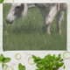From a photo taken by Brenda Thour of a grey and white donkey walking in a grassy field. Copyright by Brenda Thour