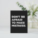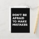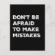 Don't Be Afraid To Make Mistakes Typography Card A motivational and inspirational postcard that is sure to inspire you to follow your dreams. Makes a wonderful and thoughtful gift or card to send someone who could use a little bit extra encouragement.
