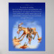 Humourous art of horse straddling canyon, cowboy hanging upside down under horse, buzzards, etc. Bible verse = "Be anxious for nothing..."