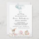 Sweet delicate don't be late Alice in wonderland bridal shower invitation featuring Alice's blue dress and legs, the white rabbit, eat me cake and large watch.