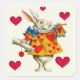 Square sticker to match our "Don't Be Late!" invitation with a vintage Alice in Wonderland image of the White Rabbit in full regalia and five red hearts on cream. See matching invitation, envelope, confetti, square favour tag, square save-the-date magnet and wrapping paper. See the entire Wonderland Sticker collection in the INVITES | Stickers & Labels section.