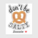 The Don't Be Salty Funny Pretzel Pun Sticker designed by Enchantfancy Design Company features a twisted soft pretzel and the words "Don't Be Salty." It is a unique gift that is perfect for anyone with a great sense of humour!