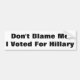 Don't Blame Me I Voted For Hillary Bumper Sticker