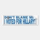 Don't Blame Me I voted for Hillary Bumpersticker Bumper Sticker