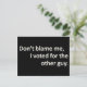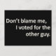 Don't blame me I voted for the other guy Postcard