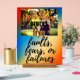 An acrylic sign with a wooden stand, sharing a timely and wise message-Don't Blame Others For your Faults, Fears, or Failures. Showing a girl in the background lifting her head up and praying. Blue, red, yellow, black and orange colours in design.