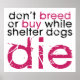 "Don't Breed Or Buy While Shelter Dogs Die" black and pink grunge design. Show your support for rescue and adoption of shelter dogs, and rescues who take dogs off "death row".