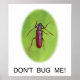 Close-up photograph of large beetle used for the logo. Caption is "Don't Bug Me!" Great small poster for kids room, the office or dorm room.