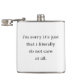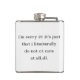 The flask itself is fine. It’s a cheap flask, obviously bought in bulk, however am prepared to overlook that. Given that it is a personalized item, I would have liked to have seen gift boxing instead of the generic packaging. Terrible printing, and/or quality. It’s a cheap, tacky vinyl. It is not cut straight and is also applied in a way that it is overhanging the bottom, causing the glue to catch on items and it will eventually roll and tear, damaging the wrap.