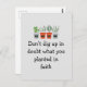 Don't dig up in doubt what you planted in faith Sq Postcard