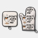 Channel your inner chef with this hilarious oven mitt and pot holder set! Featuring a don't-mess-with-me duck wielding a knife, this design is both funny and heat resistant, just like you in the kitchen. These mitts will protect your hands while you whip up culinary creations, and the design is sure to be a conversation starter. It's the perfect combo of function and humour for any kitchen.