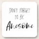 "Don't Forget to be Awesome" is an empowering phrase for those who need a little reminder of how awesome they are every day while protecting your tabletops. White background. Black lettering.
