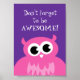 Don't forget to be awesome poster | DFTBA pink owl