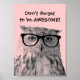 Don't forget to be awesome quote owl poster. Funny animal print design with humourous quote. Nerdy bird with glasses. Cute gift idea! Custom background colour. ie pink.
