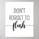 This design is composed of the phrase "Don't Forget To Flush" which is a typography poster wall art that features a clean and modern design that is perfect for brightening up and adding some personality to any space. This lovely print can be personalised further by adding your own custom text, as well as changing the colours. This design has a modern feel and would look great in a modern apartment or loft space.