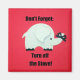 Elephant with ribbon tied to it's trunk and message: Don't forget: Turn off the Stove! (Who couldn't use a little reminder?)