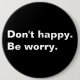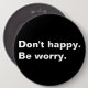 Don't happy. Be worry. funny saying sarcastic text 6 Cm Round Badge