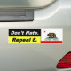 Don't Hate Repeal 8 w. Cali Flag - Bumper Sticker
