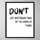 Fuel your motivation and seize the present with our compelling motivational quote poster bearing the empowering words, "Don't let yesterday take up too much of today." This poster serves as a potent reminder to focus on the here and now, letting go of past regrets and embracing the endless possibilities of each new day.