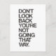 Don't look back... you're not going that way. Wise words indeed! A great motivational quote and inspirational slogan to keep yourself looking forward to the future, rather than dwelling in the past.
