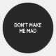 Don't Make Me Mad, Funny, Jokes, Sarcastic Classic Round Sticker