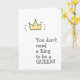 NewParkLane - Cute divorce or break up card, with a little yellow crown and quote 'You don't need a King to be a QUEEN!' in a fun script typography. The inside says 'You've got this!'. Add your name or your own inspirational message for a personalised design.