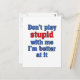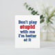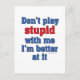 Don't play stupid with me, I'm better at it - Funny one liner. See this silly saying on products and apparels.