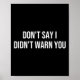 Don't Say I Didn't Warn You