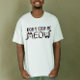 This modern t-shirt has a minimalistic design with a funny black text on white background | Don't Stop Me Meow | in Freddie Mercury's memory.