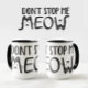 This modern mug has a simple minimal black and white design with a funny black text on a white background, Don't Stop Me Meow, in Freddie Mercury's memory.