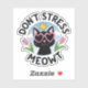 This adorable sticker features a chilled-out black cat wearing heart-shaped sunglasses, surrounded by sunny skies, fluffy clouds, and blooming tulips. With the playful message "Don't Stress Meowt," it's a delightful reminder to take a deep breath, embrace your inner feline, and let go of worries. Perfect for cat lovers, stress-relief enthusiasts, or anyone who needs a dose of positivity. Stick it on your laptop, water bottle, planner, or anywhere you need a reminder to unwind and enjoy the simple things. This durable vinyl sticker is made to withstand everyday adventures, just like your cool cat attitude.